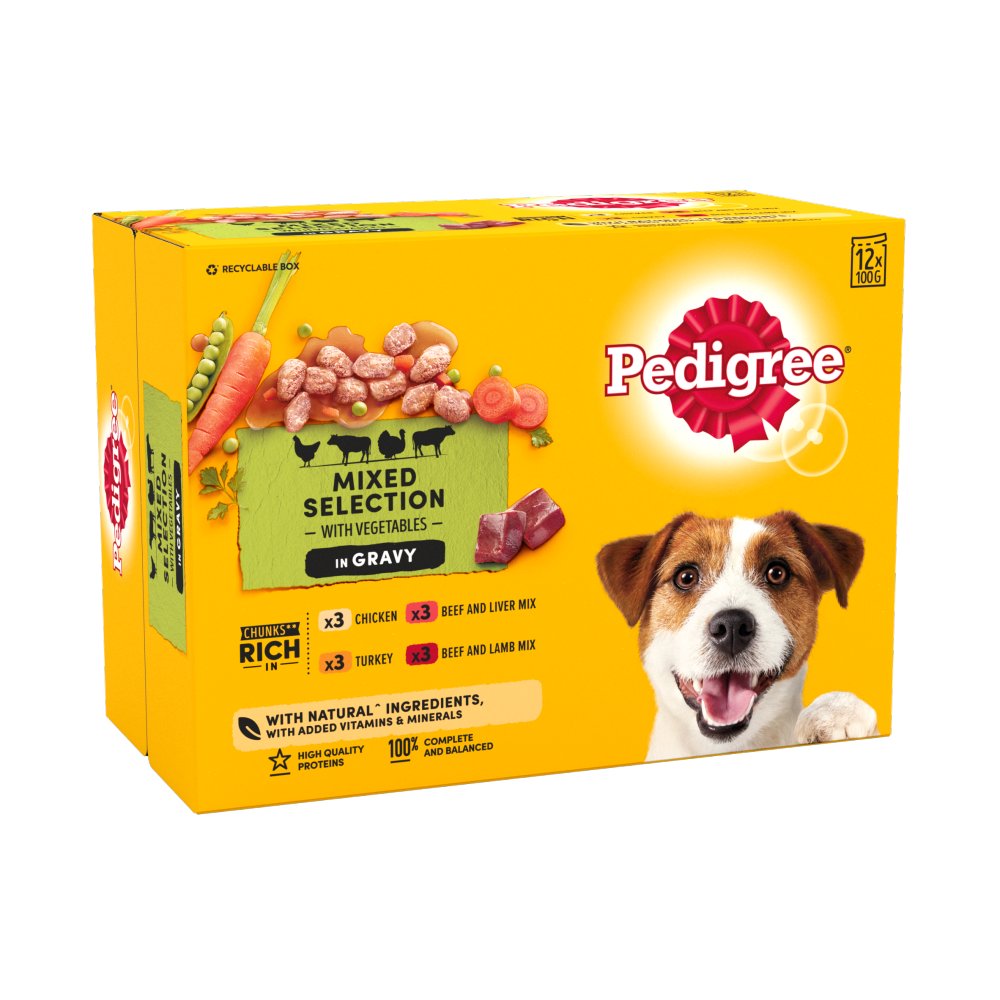 Pedigree Adult Wet Dog Food Pouches Mixed in Gravy 12 x 100g (Pack of 1)