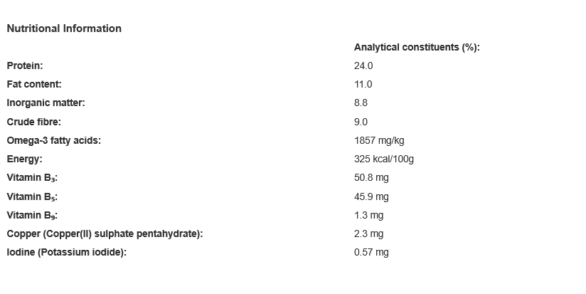 Cereals, Meat and Animal Derivatives (including Chicken 18%), Vegetable Protein Extracts, Derivatives of Vegetable Origin, Oils and Fats, Minerals, Yeasts